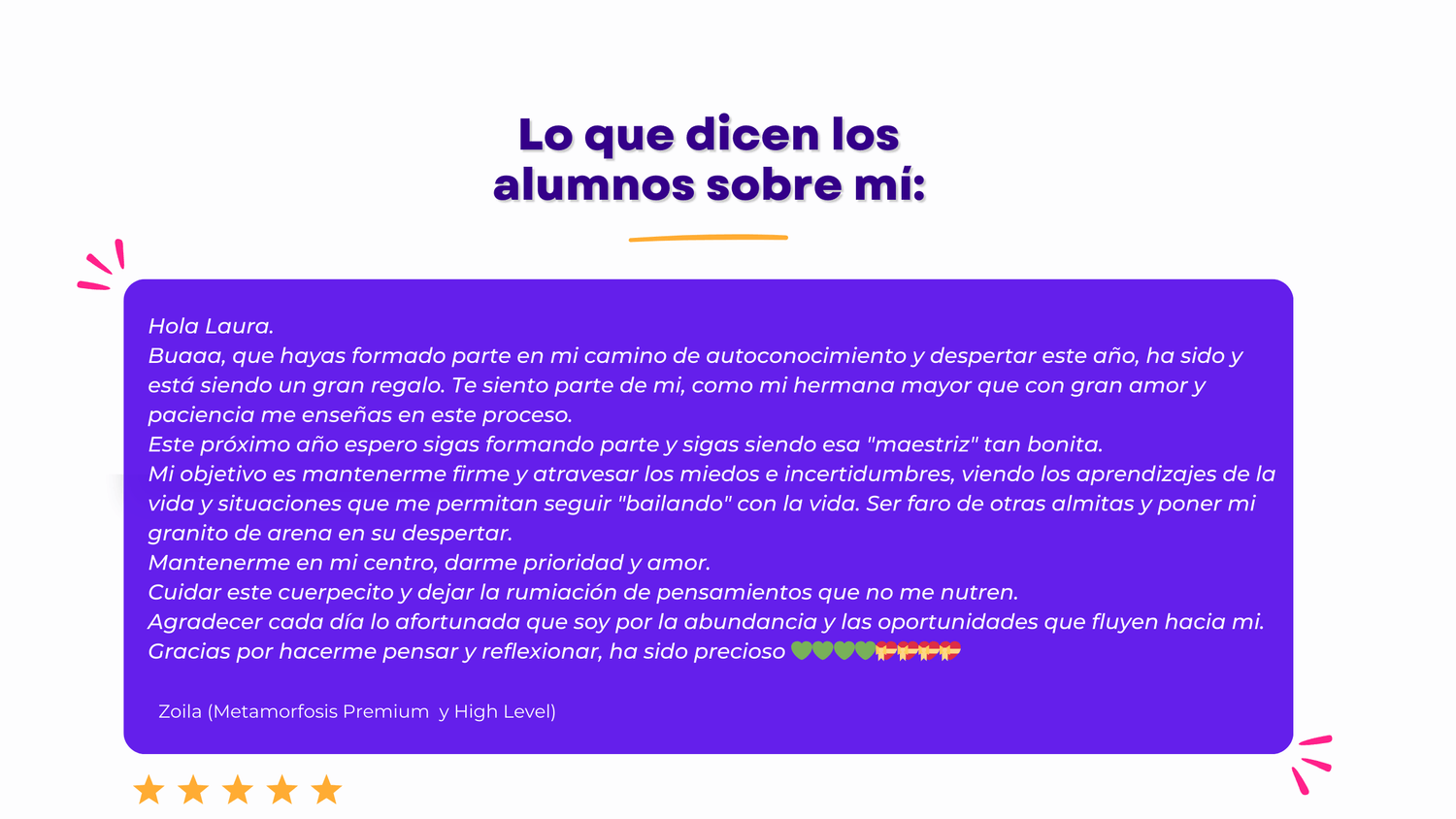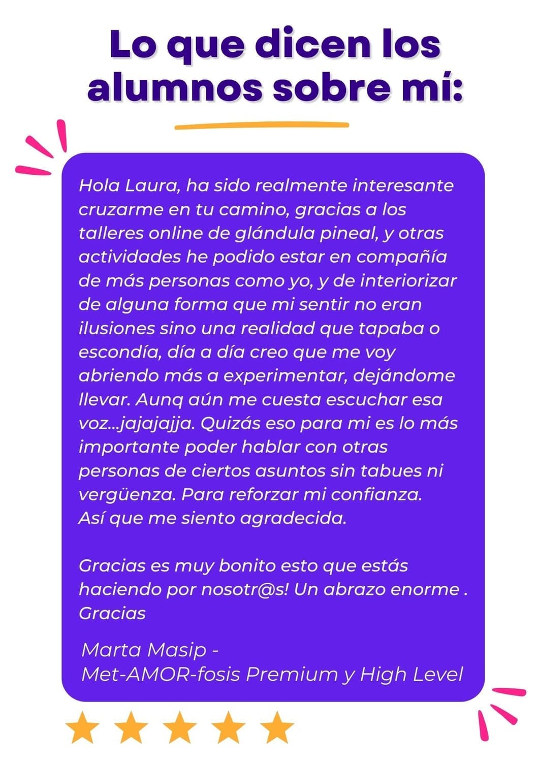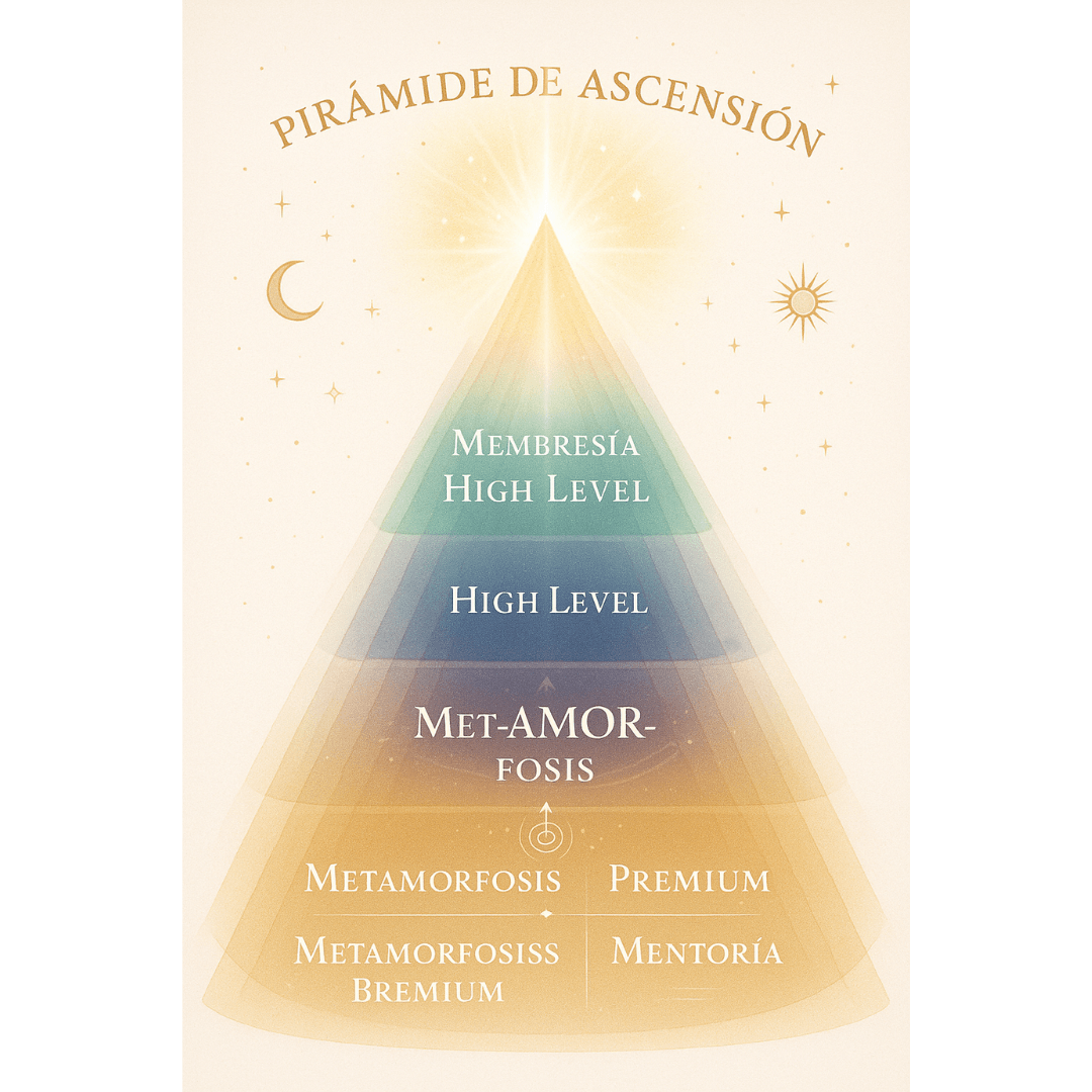 Comenzamos despertando y ordenando tu energía en Met‑AMOR‑fosis, para después expandir tu maestría en High Level, y finalmente compartir tu luz y servicio al mundo como parte de la comunidad de Mentores.